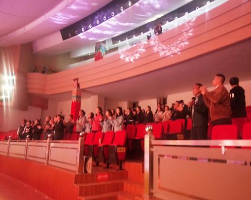 6月4日晚“依法治国 法治中国”德阳两级法院、阿坝县法院、四川成渝高速公司联会晚会在南岸新区演艺中心开展,晚会在优美欢快的舞蹈《昂然奋进》中拉开帷幕,由阿坝县人民法院干警带来的朗诵《高原法官颂》体现出了法官一心为民的使命,紧接着女子群舞《采花》、男子群舞《夏日草原》、歌曲《蝴蝶的翅膀》、《父亲的草原母亲的河》、服饰表演等精彩的节目轮番上演,观众席上传来阵阵掌声。最后,晚会在全场大合唱《歌唱我们亲爱的祖国》中落下帷幕。