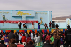 为的群众送上了一台精彩的演出。此次活动围绕提高农牧民综合素质,培育农村文明乡风,教育及引导农牧民群众知荣明耻、革除陈规的陋习。以文化演出的形式向广大农牧民群众奉献了一台特别的文化大餐,前来观看的群众达150余人,艺术团的表演形式多样,内容丰富, ![]() 有歌舞表演,以及演员与群众的互动表演等。特别是舞蹈《草原上的卓玛》的表演,牢牢的吸引住了群众的眼球,观看的群众时不时发出热烈的掌声,整场演出斗沉浸在热情洋溢的气氛之中。演出结束后,很多农牧民群众都表示:此次活动丰富了他们的文化生活。